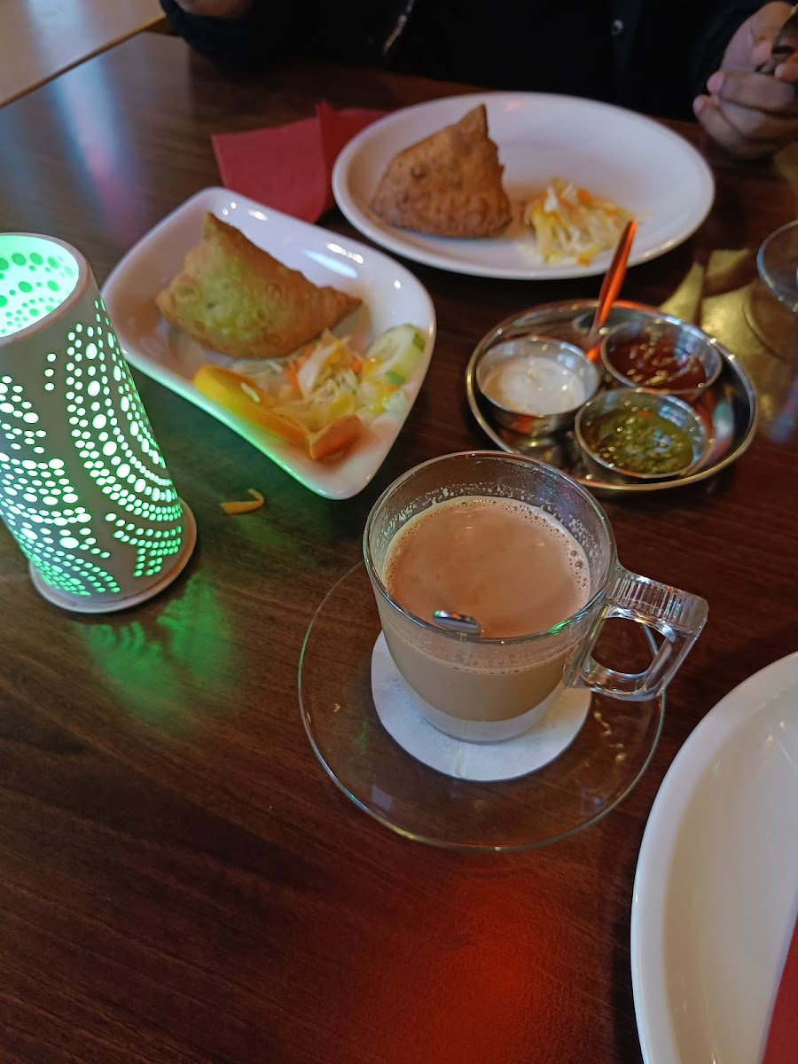 Another crowd favorite is the Chicken Tikka Masala, known here for its creamy texture and well-rounded spice blend. It’s the kind of dish that works just as well for lunch as it does for a relaxed evening meal. Alongside the savory options, lighter bites like Chai and Samosa add to the authentic street-food feel. The chai is aromatic and soothing, while the samosas are crisp, golden, and ideal as a starter or quick snack.