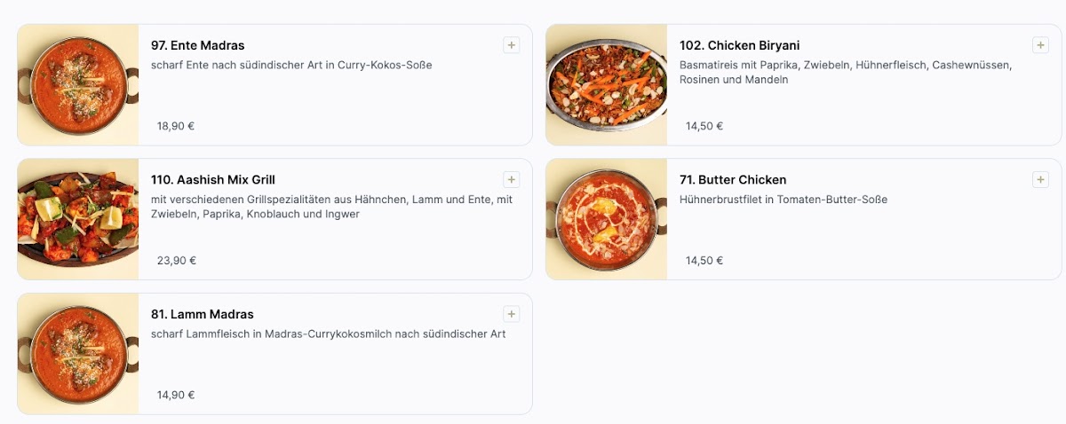 Seen as a whole, the menu at Aashish Indian Street Food Restaurant feels thoughtfully curated, focusing on comforting North Indian street food classics rather than an overwhelming number of options. Dishes like Chicken Curry and Chicken Tikka Masala anchor the menu with rich, well-balanced gravies that highlight familiar Indian spices without feeling heavy or overdone. Breads play an important supporting role here: Cheese Bread adds a slightly indulgent twist, while Aloo Parantha delivers a more rustic, homestyle experience with its spiced potato filling. For lighter moments or quick bites, Chai And Samosa stands out as a simple but satisfying pairing that reflects everyday Indian street food culture. The inclusion of Makke Di Roti Sarso Da Saag shows a commitment to authenticity, bringing a traditional Punjabi combination to the table that contrasts nicely with the more widely known curry dishes. Overall, the menu feels cohesive and intentional, blending hearty mains, comforting breads, and classic snacks into a balanced offering that clearly reflects the restaurant’s focus on genuine Indian street food flavors.